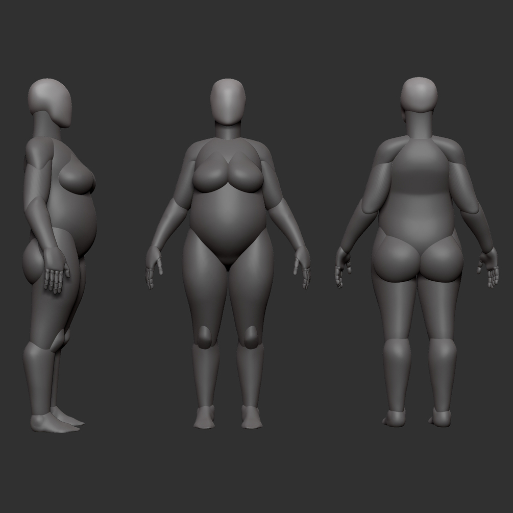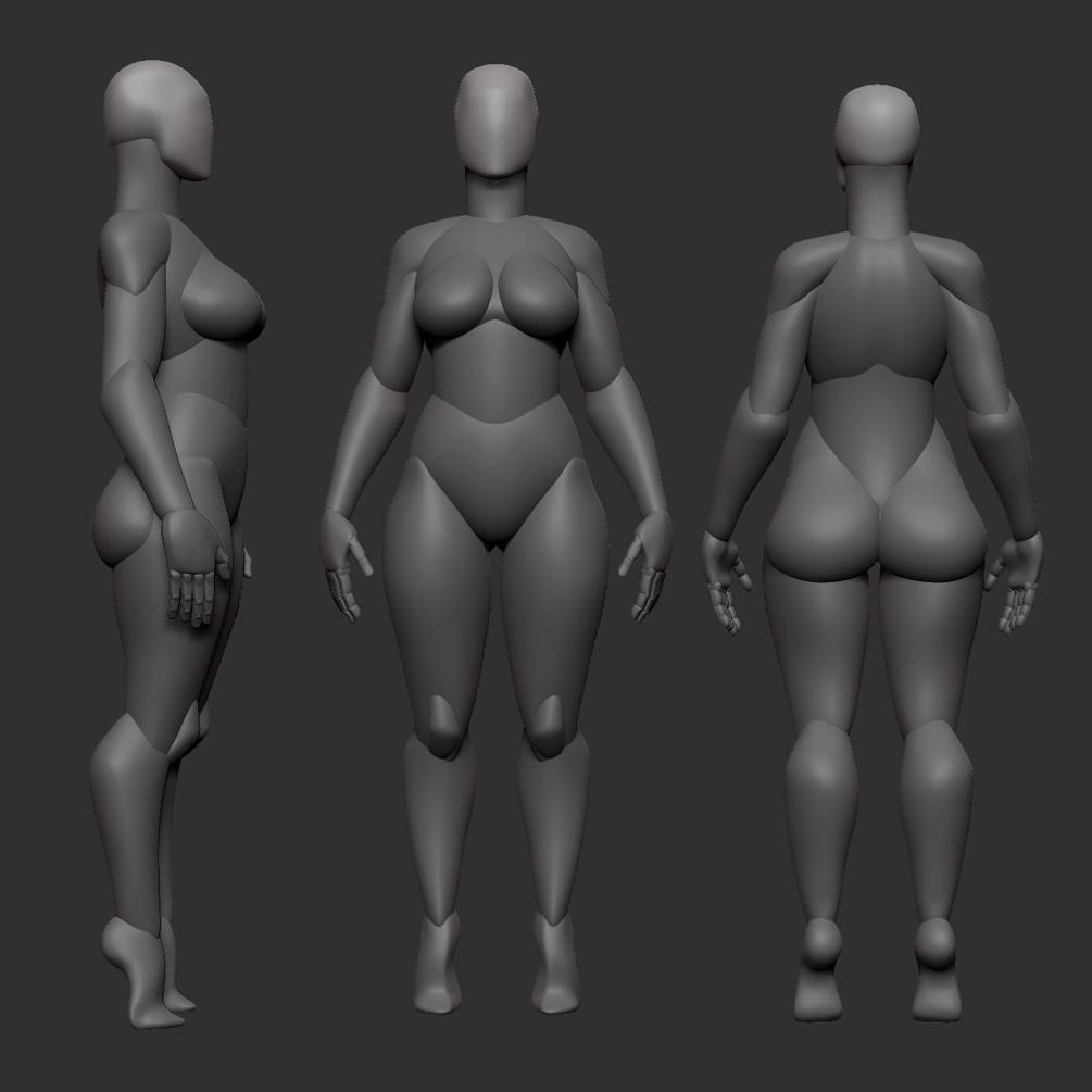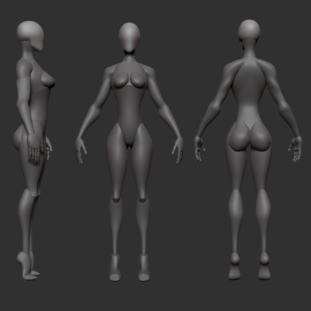 This download includes 5 character base mannequins made in ZBrush. It includes 5 ZTools with subdivision levels and Dynameshed topology.